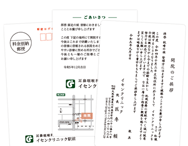 今までお世話なった方々に対し開院日や内覧会などの案内を郵送でご報告。