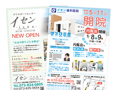 開院案内や内覧会、求人募集などをチラシに掲載し、新聞折込みやポスティングでお伝えします。