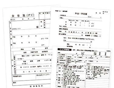 高齢化に伴う介護施設や老人ホーム、デイサービスなどが使用する印刷物も数多く取り扱いしています。